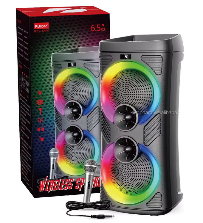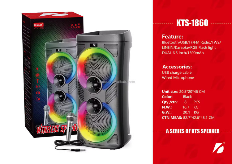 هم اکنون با معرفی محصول فوق العاده پر طرفدار شرکت kts مدل بینظیر در خدمت شما عزیزان خواهیم بود.اسپیکر قابل حمل مدل نظر افرادی که در محیط خارج از خانه به دنبال یک اسپیکر همه فن حریف می گردند را به خود معطوف کرده است. این اسپیکر همراه با میکروفن دارای طراحی دوست داشتنی و جذاب می باشد. این اسپیکر با ارتفاع 50 سانتی متر طراحی و تولید شده است و سایز ساب آن 6.5*2 اینچ است که وزن کل اسپیکر معادل 3000 گرم است. اسپیکر انرژی مورد نیاز خود را از طریق باتری قابل شارژ با ظرفیت 3500 میلی آمپر تامین میکند. از نقاط مثبت این اسپیکر می توان با ظرفیت باطری بسیار بالا و همچنین قابلیت تغییر رقص نور نیز اشاره نمود.همچنین این اسپیکر دارای رادیو fm، ریموت کنترل ، میکروفون با سیم و... می باشد که انتخاب برای خرید آن را آسان کرده است.