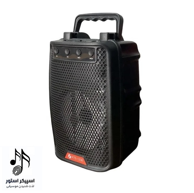 اسپیکر بلوتوثی kts 1338دارای دو عدد ساب 4اینچی و پشتیبانی از رقص نور زیبا و کیفیت صدایی عالی میتواند لحظات قشنگی را در مهمانی ها و جشن های خانوادگی به ارمغان بیاورد. همچنین این اسپیکر از کارت حافظه جانبی تا حافظه 32 گیگابایت و فلش مموری پشتیبانی می کند. و توان خروجی این مدل 5 وات بوده و دارای یک میکروفن میباشد