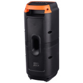 جنس بدنه ساخته شده از پلاستیک با کیفیت، مقاوم در برابر آسیب های احتمالی همچون فشار و ضربه دارای یک عدد درگاه USB و یک عدد درگاه TF جهت پخش فایل های ذخیره شده ویک عدد درگاه اتصال میکروفون کلیدهای فیزیکی تعبیه شده بر روی بدنه جهت مدیریت موسیقی، MODE، خاموش/ روشن و...، اقلام همراه یک عدد میکروفون اتصال بی سیم از طریق بلوتوث و اتصال با سیم توسط جک 3.5 میلی متری صدا، مجهز به نورپردازی RGB جهت ایجاد جلوه بصری زیبا تامین انرژی از طریق باتری لیتیومی با ظرفیت 1500mAh، شارژ مجدد از طریق درگاه تایپ سی تعبیه شده بر روی بدنه توسط کابل همراه برخوردار از 2 درایو 4 اینچی با توان خروجی 10 وات (2*5W)، حساسیت سیگنال به نویز 80db و پاسخ فرکانسی 100 هرتز الی 20 کیلوهرتز