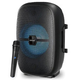 این اسپیکر دارای قابلیت پشتیبانی از رادیو FM بوده و مجهز به ورودی میکروفون است که برای استفاده در مراسمهای زنده، سخنرانیها یا اجرای موسیقی بسیار مناسب است. کنترل از راه دور (ریموت کنترل) نیز امکان مدیریت آسان صدا و تنظیمات مختلف را فراهم کرده است.
