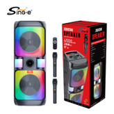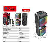 پس از سالها تجربه و تولید محصولات مختلف اینبار شاهد شاهکار بی نظیر شرکت ZQS مدل معروف ZQS 8268 هستیم.این اسپیکر در سال 2022 به عنوان پر فروش ترین محصول این شرکت در کشور ایران برگزیده شد.8268 zqs یک اسپیکر با دو بلندگوی 8 اینچی و یک تیوتر یک اینچی میباشد که قادر به صدایی بسیار بلند و با کیفیت با حجم 4000 هزار وات اسمی می باشد.طراحی ظاهری این اسپیکر بسیار زیبا و ارگونمی می باشد که به راحتی قابلیت حمل و جابجایی را دارد.باتری درون این اسپیکر از ظرفیت بسیار بالای 4500 میلی آمپر برخوردار است که توانایی روشن نگه داشتن این اسپیکر را به مدت حداکثر 6 ساعت دارد.در قسمت فوقانی این محصول پنل کنترل کننده بسیار حرفه ای دیده می شود.همچنین در قسمت پشتی این محصول جایگاهی تعبیه شده که میتوانید با قرار دادن میکروفن بیسیم در آن از گم شدن یا اسیب دیدن میکروفن جلوگیری کنید.یر روی میکروفن این محصول کلید های کم و زیاد کردن و تغییر صدای خواننده(بچه/زن/ پیر مرد) وجود دارد.رقص نور این محصول نیز دارای قابلیت تغییر و خاموش کردن می باشد.در کل 8268 یکی از بهترین گزینه ها ی خرید برای انتخاب یک اسپیکر برای داخل و خارج از منزل می باشد.