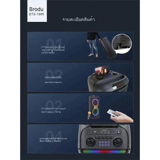 BTS1995یک بلندگوی حرفه ای کارائوکه است که خروجی صدای قدرتمند و جلوه های نورپردازی سرگرم کننده را ارائه می دهد. مجهز به 2 بلندگوی 10 اینچی و 2 ساب ووفر 10 اینچی. این کار صدای بلند و واضحی را ارائه می دهد. چراغ های LED اسپیکر را می توان با توجه به ریتم موسیقی یا ترجیحات شما روشن کرد. ویژگی های محصول: توان خروجی 150وات rms2 بلندگو 10 اینچی ساب ووفر 2*10 اینچی اتصال بلوتوث پورت USBاسپیکر برودو یکی از محصولات محبوب در دسته اسپیکرهای بلوتوث قابل حمل است. این اسپیکر به دلیل کیفیت صدای خوب و قابلیت حمل آسان مورد توجه خریداران قرار گرفته است. برخی از ویژگیهای کلیدی این اسپیکر عبارتند از:
