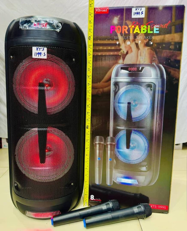 اسپیکر شارژی و قابل حمل 1199S یکی از پر فروش ترین محصولات شرکت Kts می باشد که طراحی فوق العاده این اسپیکر وجه تمایزی بر بقیه محصولات این شرکت شده است.این دستگاه شامل دو عدد ساب 8 اینچ و یک تیوتر 1 اینچ می باشد که هرکدام با توان 50 وات rms میتواند صدایی فوق العاده بلند و با کیفیتی را تولید کند. طراحی و ساختار دینامیک استوانه ای این محصول به جذابیت مثال نزدنی آن چندین برابر افزوده است.همچنین این دستگاه از تمام امکانات مولتی مدیا نظیر بلوتوث،فلش،مموری، ای یو ایکس و... پشتیبانی کرده و توسط ولوم های تنظیم کننده اکلایزر می توان جنس صدای آن را من باب سلیقه خود تنظیم کرد.از قابلیت دیگر آن می توان به وجود پارتی لایت هایی در بدنه و کف این دستگاه اشاره نمود که توسط کلید تعبیه شده در پنل و کنترل میتوان آن را خاموش یا تغییر رنگ داد.از این دستگاه می توانید در جشن های نسبتا بزرگ خانوادگی استفاده کرده و لحظات شادی را توسط آن رغم بزنید.