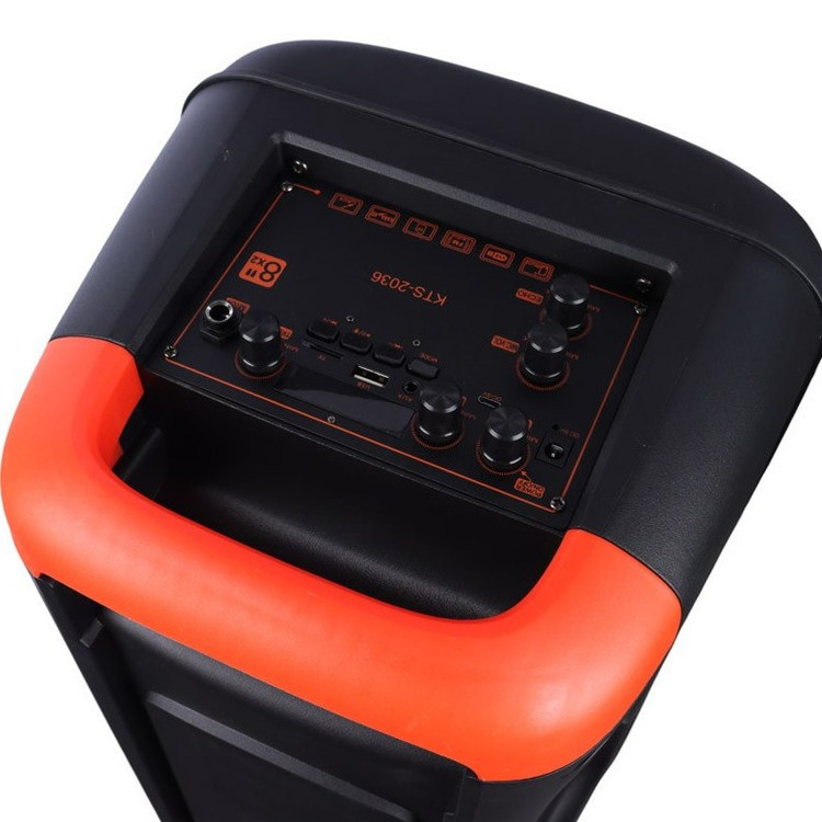 اسپیکر چمدانی بی سیم قابل حمل کی برود مدل KTS-2036 همراه میکروفون پشتیبانی از امواج رادیوی FM، دارای فناوری TWS برای اتصال همزمان چند دستگاه امکان شارژ از طریق پورت تایپ سی و پورت سوزنی به همراه کابل شارژ سوزنی با ولتاژ شارژ 5 ولت DC مجهز به کلید های فیزیکی جهت مدیریت موسیقی، ولوم، نورپردازی، Mode و ...، دارای نمایشگر دیجیتال مجهز به 2 عدد درایور 8 اینچی با نورپردازی RGB جهت ایجاد جلوه های بصری در مکان های تاریک و کم نور تامین انرژی از طریق باتری داخلی با ظرفیت 2400 میلی آمپر ساعت، مجهز به دسته جهت سهولت در حمل پشتیبانی از پورت مموری USB و کارت حافظه SD جهت پخش فایل های ذخیره شده دلخواه تا ظرفیت 32 گیگابایت جنس بدنه ساخته شده از پلاستیک باکیفیت، مقاوم در برابر آسیب های فیزیکی احتمالی، دارای میکروفون بی سیم همراه اتصال بی سیم از طریق بلوتوث نسخه 5.0 با برد اتصال تقریبی 10 متر، اتصال سیمی از طریق جک 3.5 میلی متری صدا امکان پخش موسیقی با صدای بی نظیر را برای شما به ارمغان می اورد .